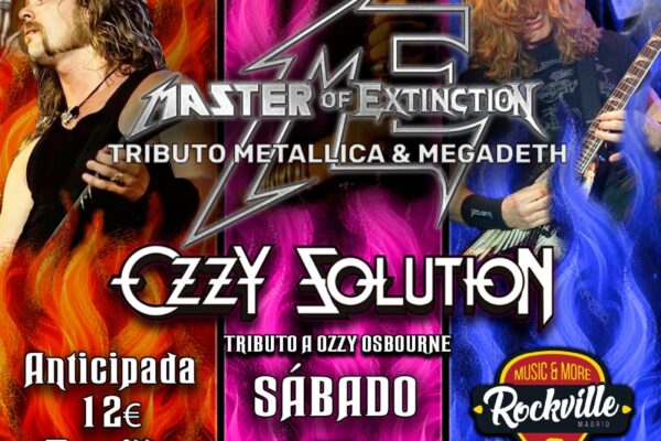 SÁBADO 07 - MASTER OF EXTINCTION: TRIBUTO METALLICA & MEGADETH + OZZY SOLUTION: TRIBUTO OZZY OSBOURNE (Tributo / 21:00 horas / Entrada 12 € anticipada...